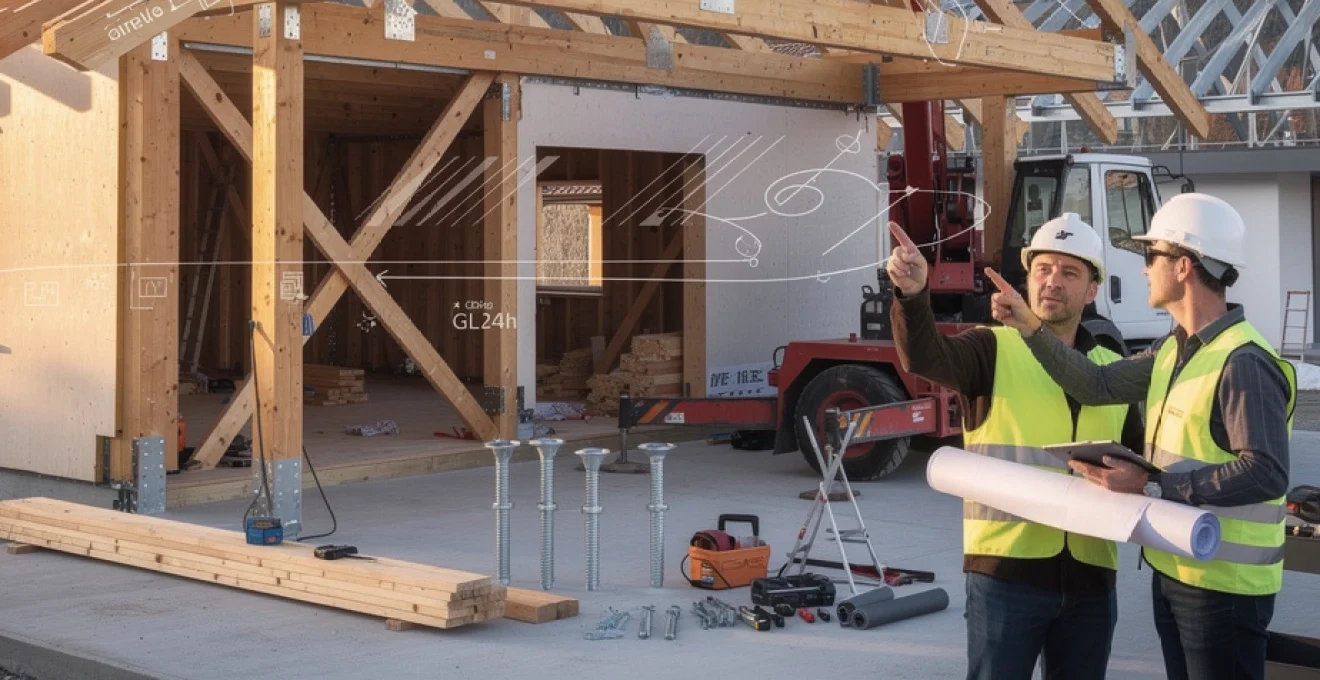 Le chef de chantier organise souvent la manœuvre en synchronisant le grutier et les charpentiers par signaux ou radio. Chaque ferme est posée sur son emplacement, calée provisoirement puis contreventée dès que possible pour éviter tout basculement. Vous imaginez aisément les conséquences d’une ferme mal levée ou d’une sangle inadaptée : risque de chute de charge, de torsion de la ferme, voire d’accident grave pour les équipes au sol.