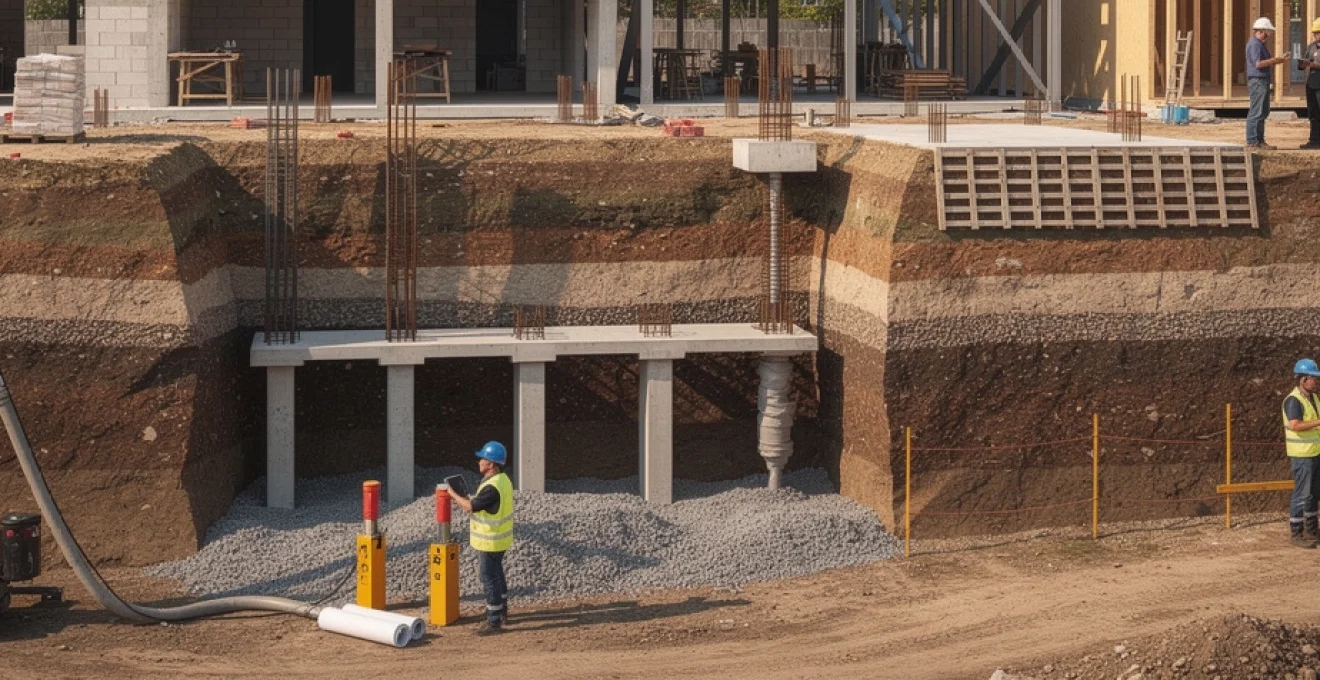 Une fois les caractéristiques géotechniques du terrain connues, vient l’étape du choix du type de fondations et de leur dimensionnement structurel. Ce travail, au cœur des travaux de gros œuvre, vise à assurer une transmission homogène des charges de la superstructure vers le sol, tout en respectant les critères de sécurité, de stabilité et de limitation des tassements. Selon la nature du sol et l’importance de l’ouvrage, on optera pour des fondations superficielles, semi-profondes ou profondes, chacune répondant à un domaine d’emploi spécifique.